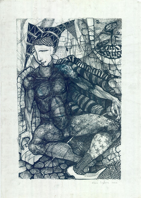 The properties of line, spot and point are linked with the art of hint, giving the viewer a space for imagination. The works are made in the technique of hand-drawn graphics, which makes them unique, since they are created in a single copy, in comparison with multi printed or computer graphics.